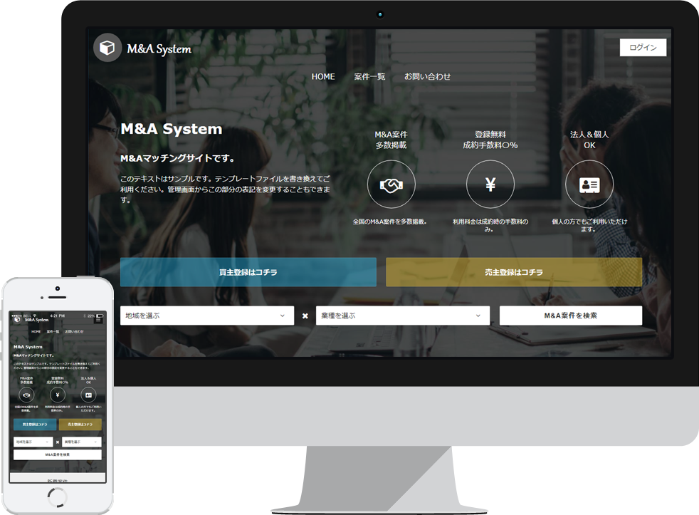 M&Aマッチングサイトをすぐに開設出来るCMSパッケージです